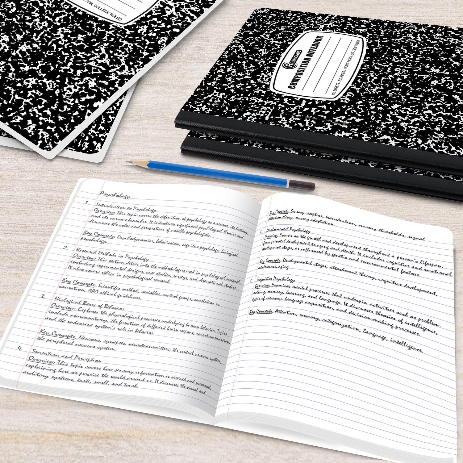 Features: Bulk Marble Composition Notebook College Ruled, 100 Sheets, 200 Pages, 9-¾” x 7-½”
