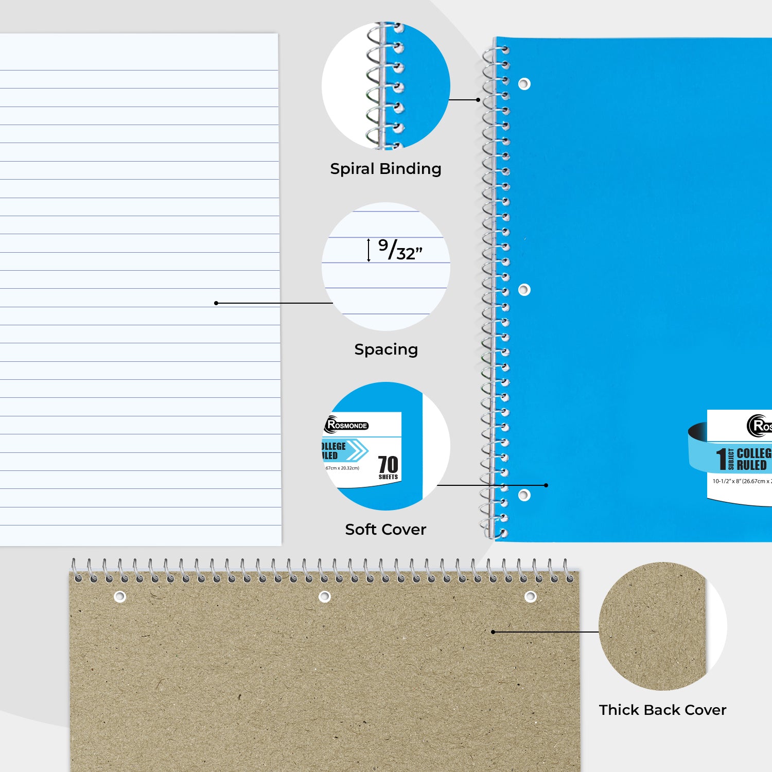 Features: Bulk Spiral 1 Subject Notebook College Ruled, 70 Sheets, 140 Pages, 8 x 10-½