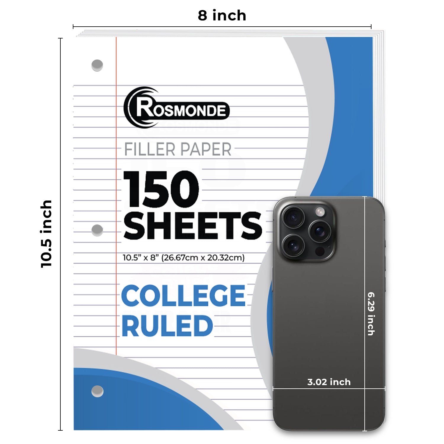 Features: Bulk Loose Leaf Binder Filler Papers, College Ruled, 150 Sheets, 300 Pages, 8 x 10-½