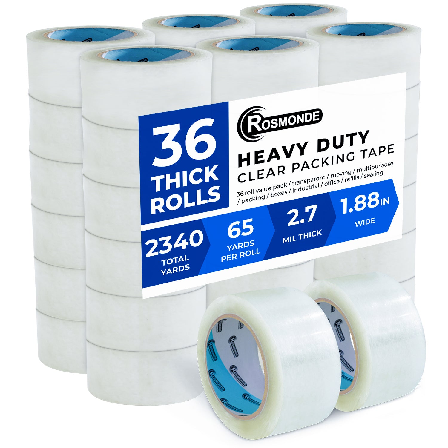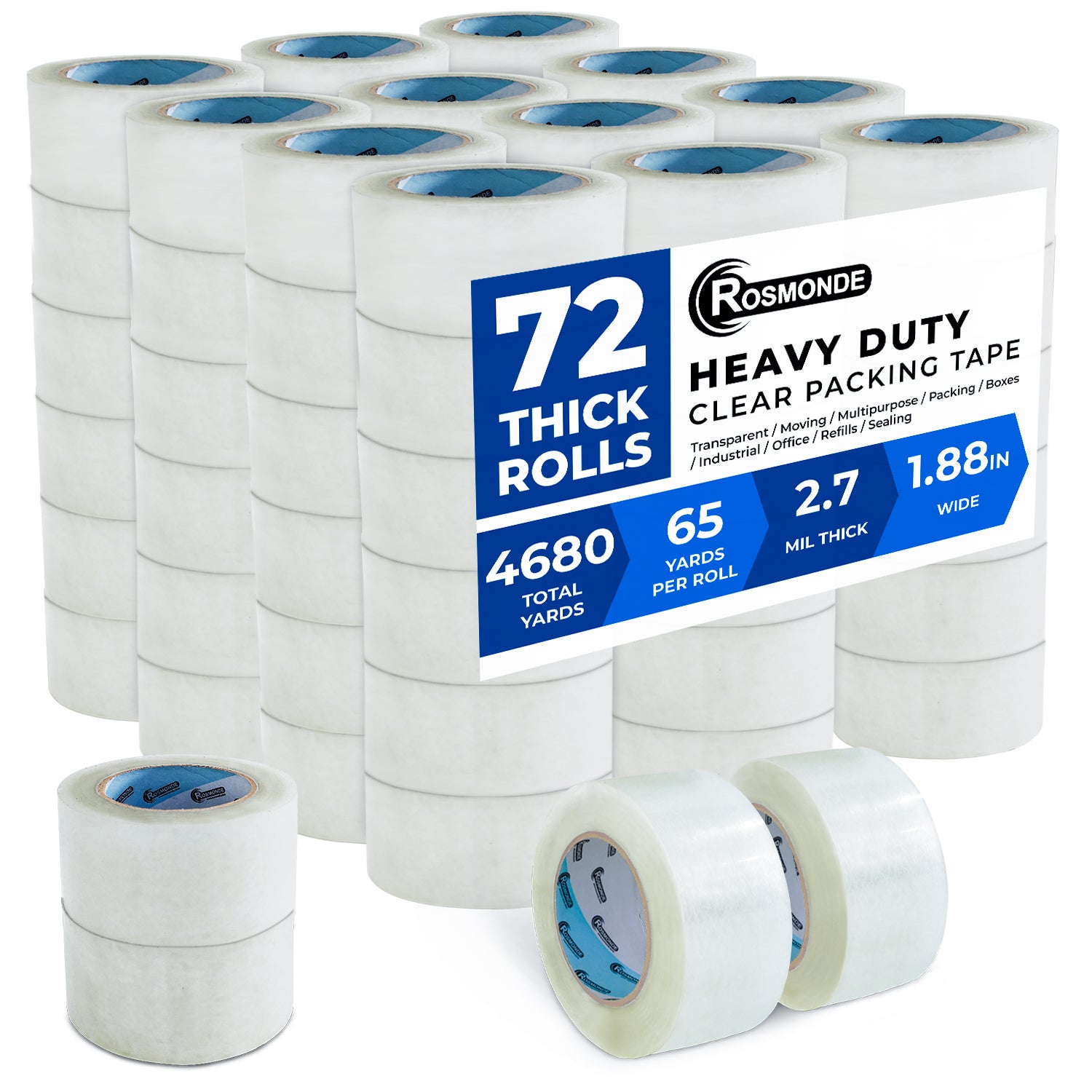 The Rosmonde Clear Packing Tape is a premium-quality solution designed for heavy-duty packing, shipping, and storage needs. With a durable 2.7mil thickness and a 1.88-inch width, it provides ultra-strong adhesion to securely seal heavy or overfilled boxes. This value-packed set includes 12, 24 & 36 rolls, each offering 65 yards of tape, ensuring a long-lasting supply for personal, professional, or industrial use. The transparent finish gives packages a clean, professional appearance while keeping labels and markings visible. Designed for versatility, it excels in moving, mailing, and storage tasks, and its 3-inch core fits standard dispensers for smooth, efficient application. Perfect for dependable and polished packaging, Rosmonde ensures quality and convenience every time.
