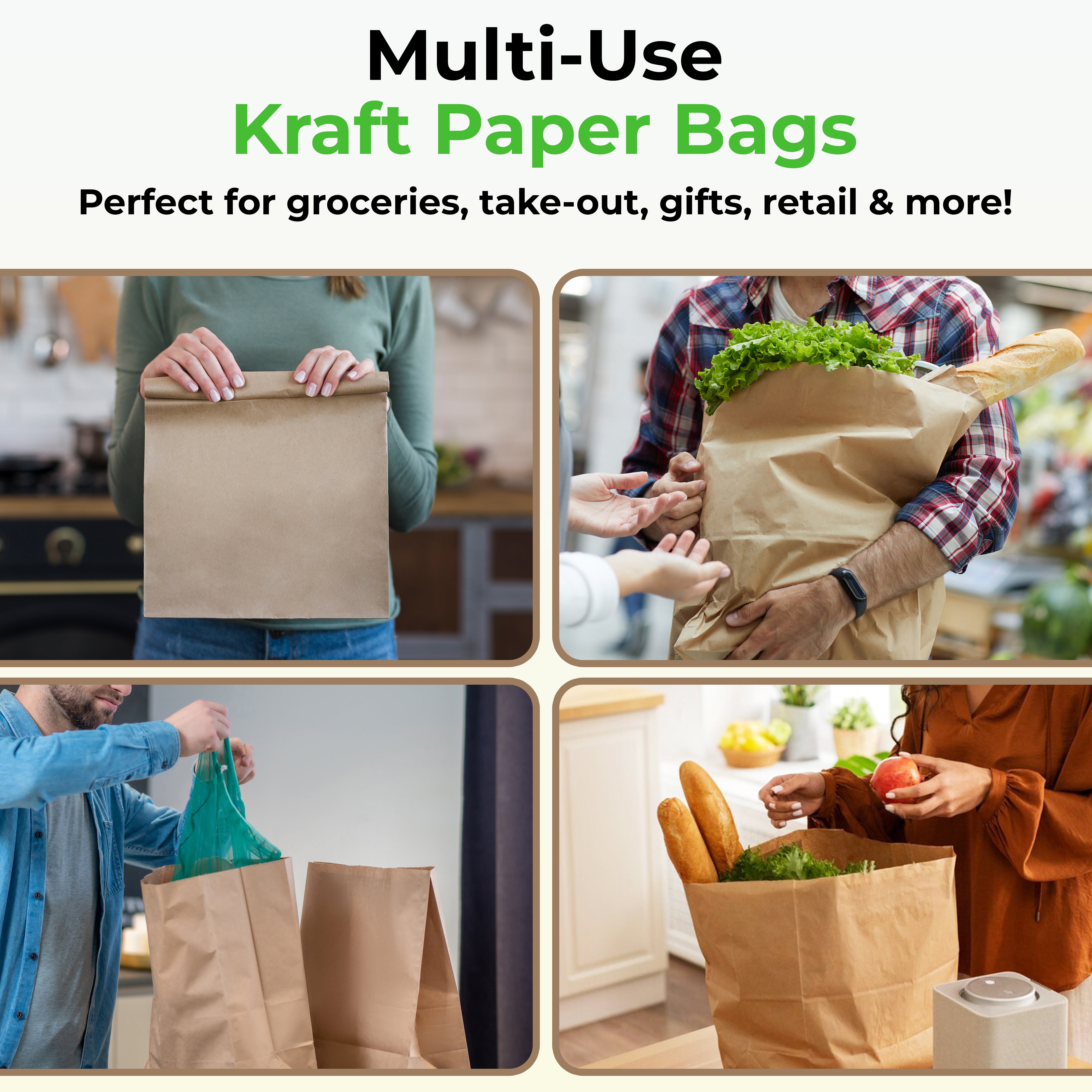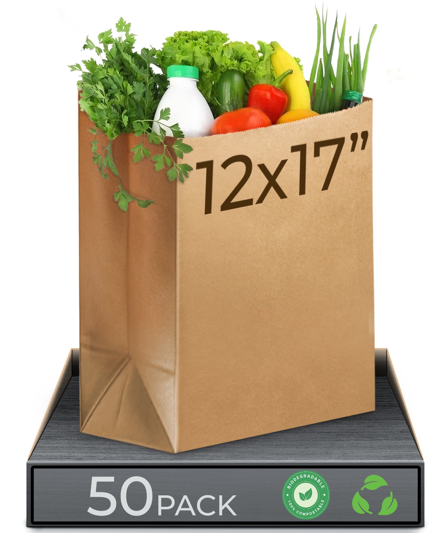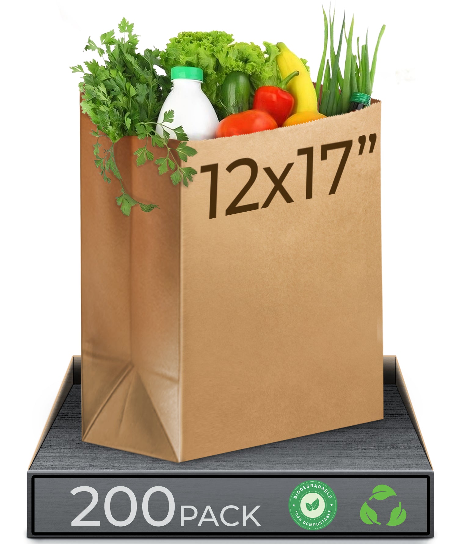 Feautures: Bulk Pack Kraft Paper Take-Out Bag, 12" x 7" x 17" Tote Style without Handle Natural Brown.