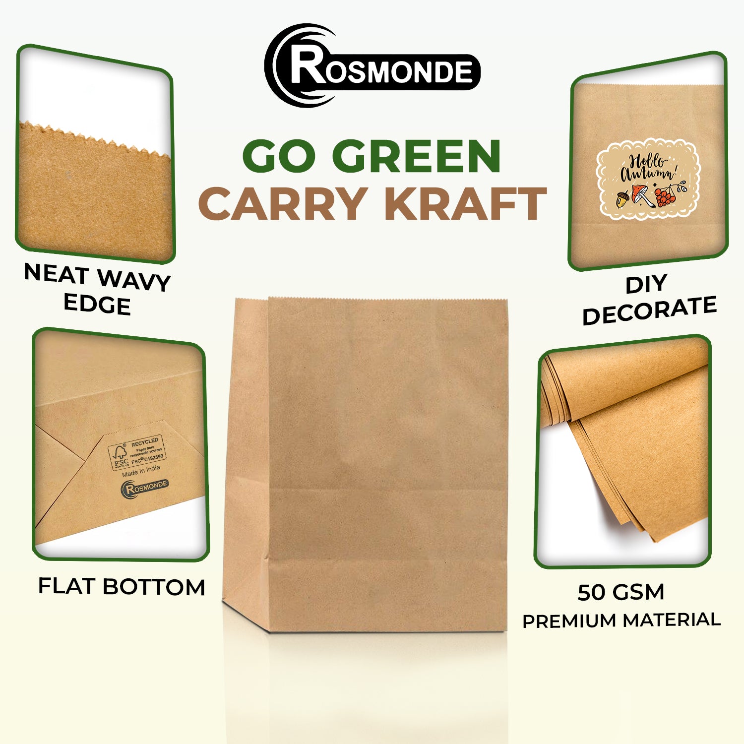 Let's say we bring greener future together! At Rosmonde, we only offer strong and durable kraft paper bags that become your smart choice for gifting, shopping, and business packaging needs. A symphony of diverse supplies. Choose Rosmonde for a strong, eco-friendly, gifting, shopping and daily essentials need.
